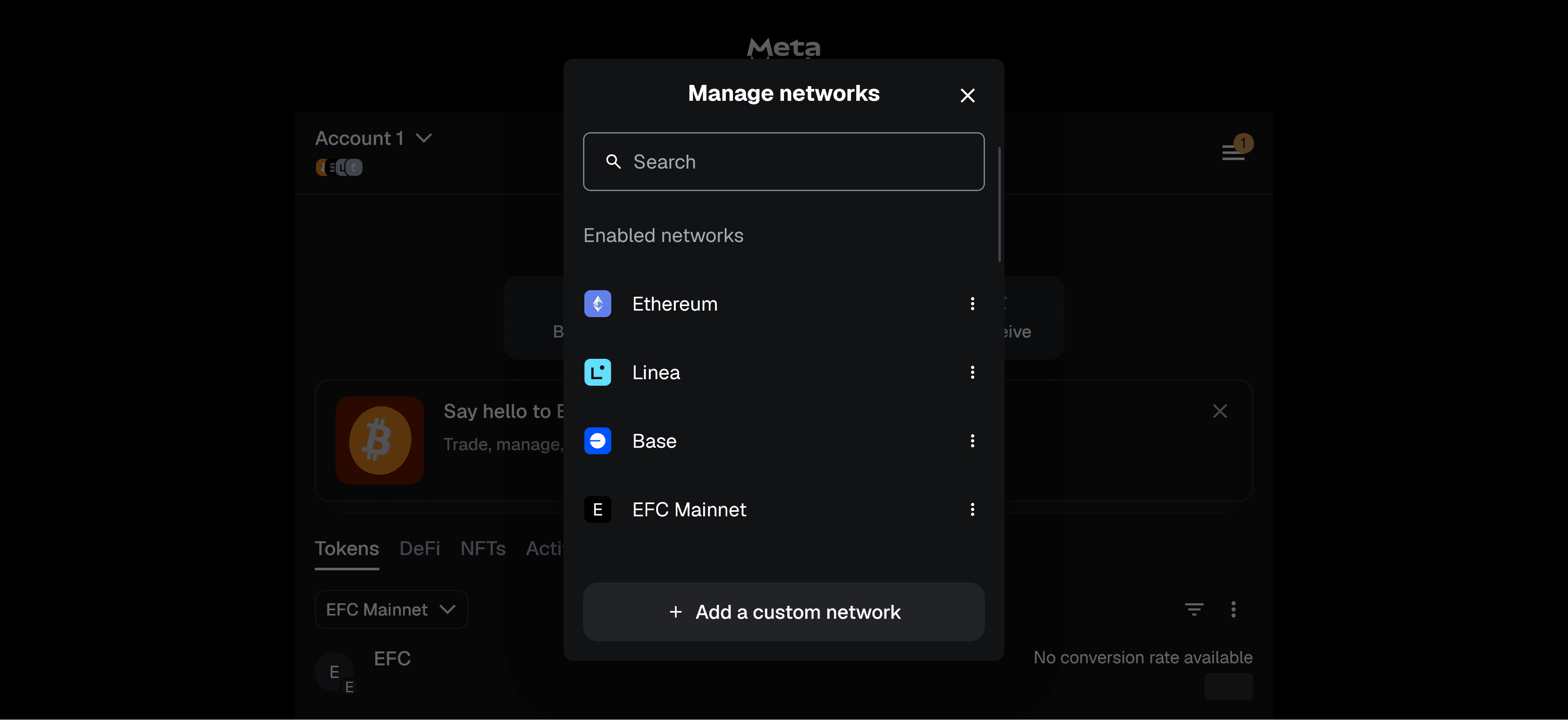 Once you have entered this information click save and efc mainnet is now added to networks you can interact with.